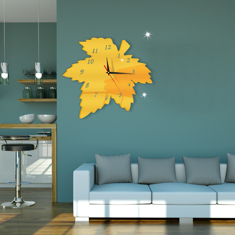 Horloge murale créative en acrylique, feuille d'érable, décoration pastorale, horloge silencieuse pour chambre à coucher, DIY bricolage
