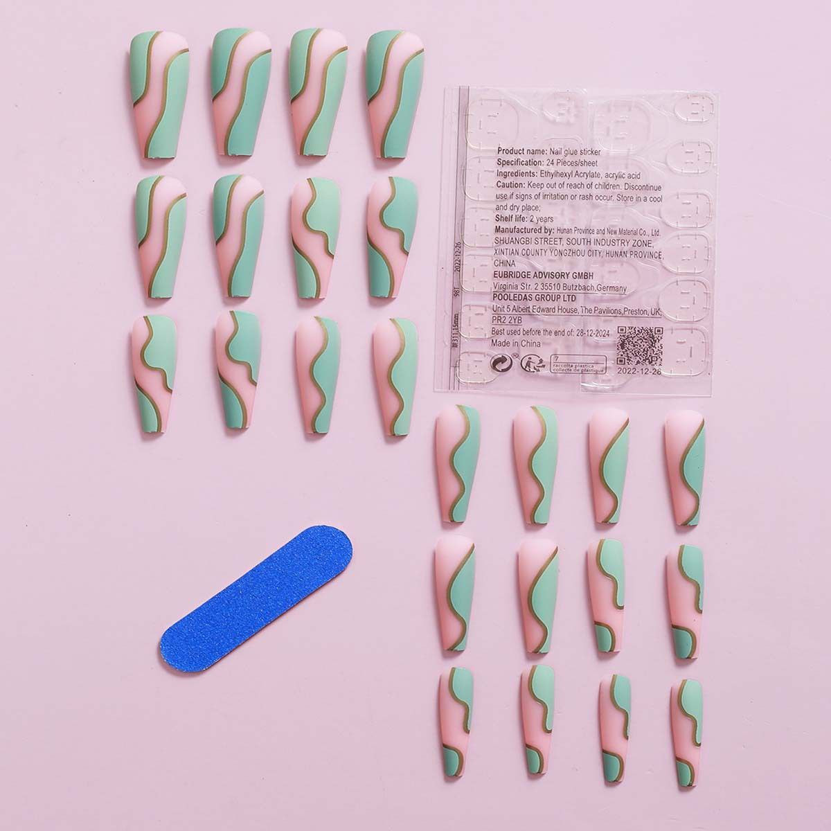 Ongles transfrontaliers longue tenue faux ongles givrés contrastés manucure gris et vert patchs de faux ongles amovibles