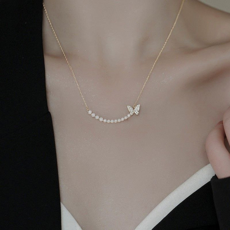 Nouveau collier papillon de perles pour femmes, design de luxe léger, personnalité haut de gamme, tempérament polyvalent, chaîne de clavicule