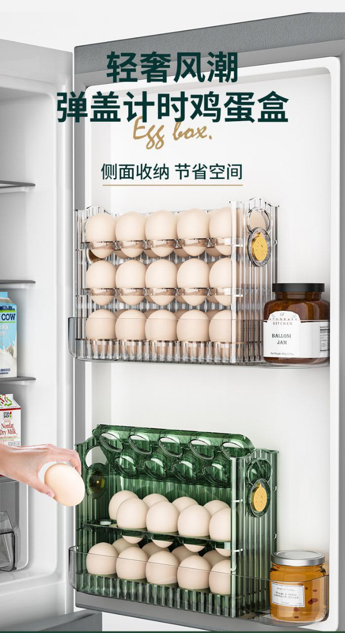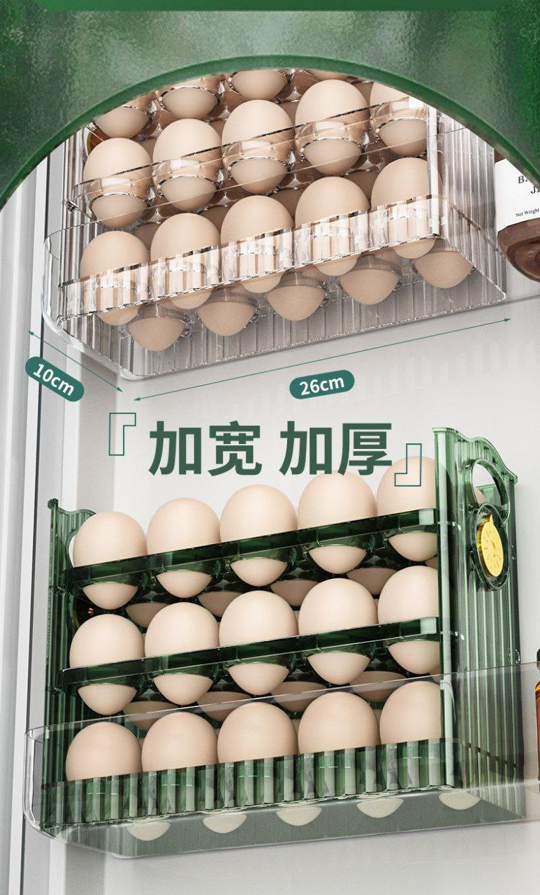 Boîte de rangement des œufs côté réfrigérateur réversible grande capacité divisée cuisine à trois couches bac à œufs transparent et aux œufs de canard 30trous