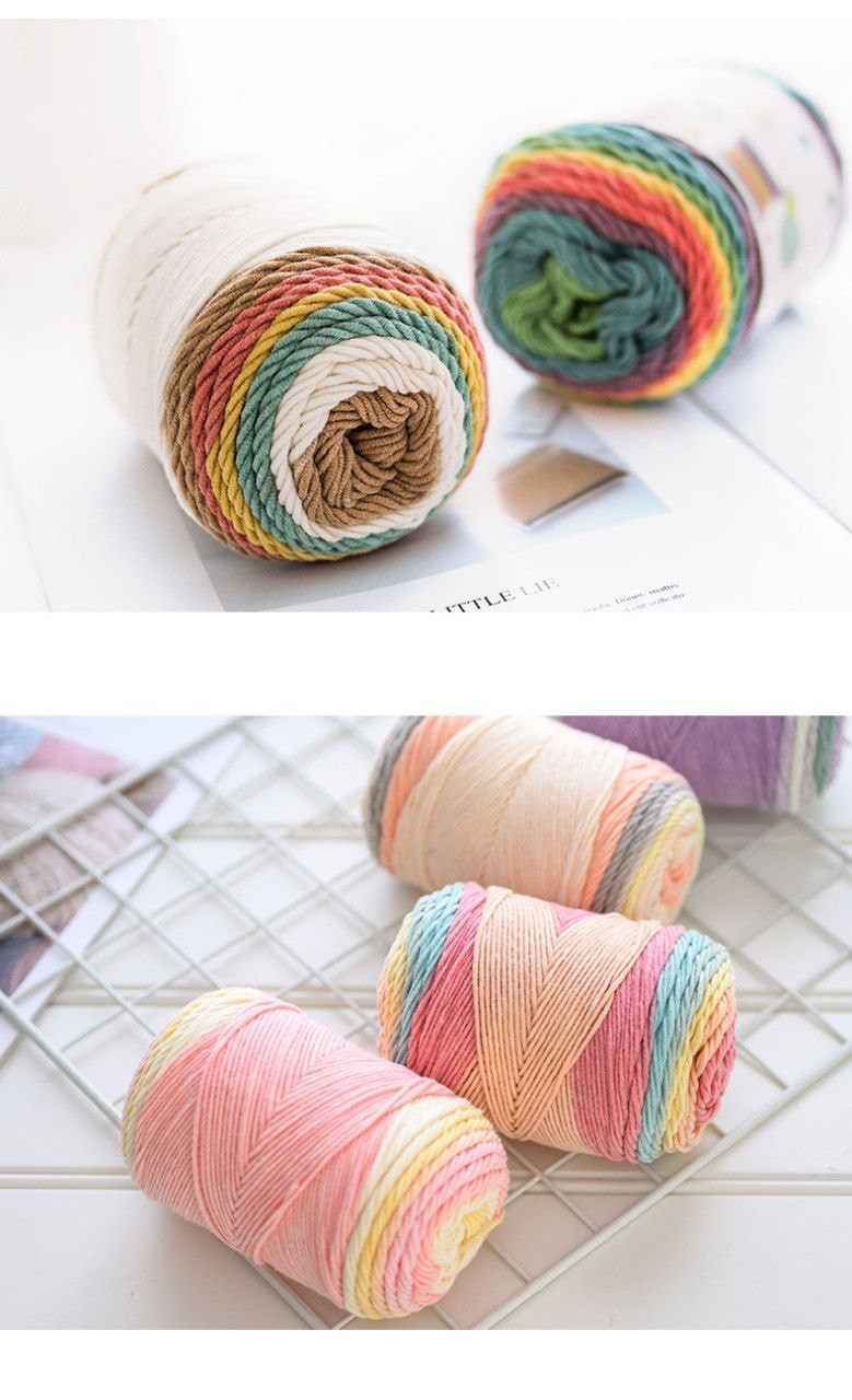 Laine 5 brins arc-en-ciel coton tricoté à la main poupée en laine oreiller couverture lait coton laine 100g