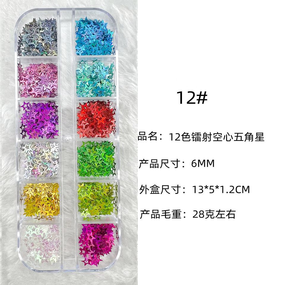 Manucure 12 cadres laser fins paillettes de forme spéciale papillon étoile à cinq branches parapluie feuille d'érable 20 accessoires pour ongles rose pailleté