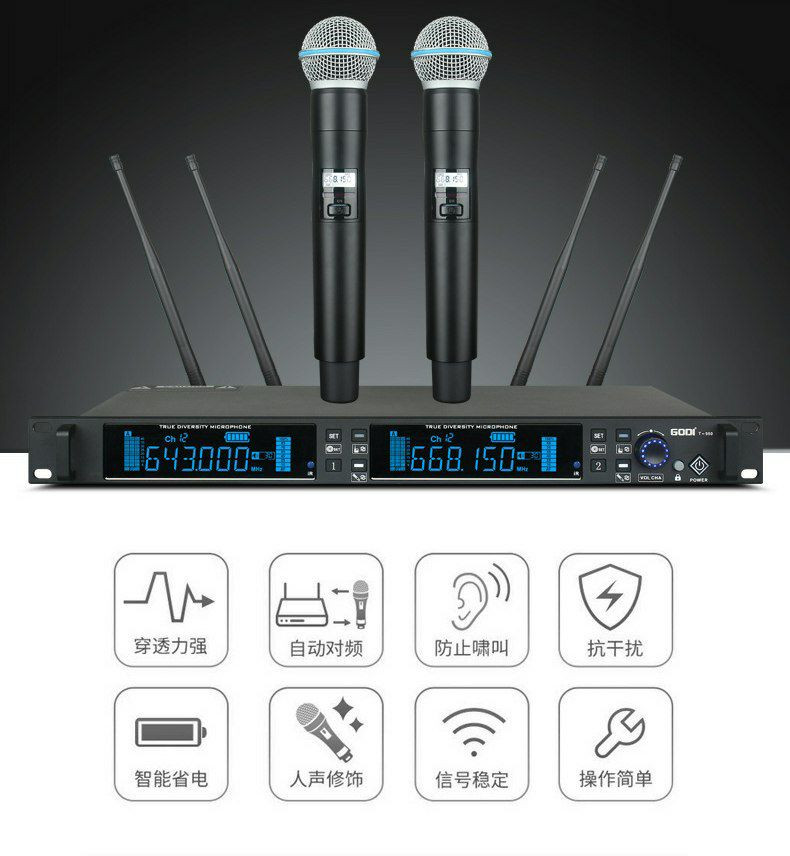 Les amplificateurs utilisent des tubes de puissance Toshiba et intègrent une protection contre les surcharges. Le microphone sans fil offre une réception à vraie diversité pour une meilleure fidélité sonore et une portée de 500 mètres en espace ouvert. La table de mixage dispose de 99 effets DSP et de fonctionnalités Bluetooth et d'enregistrement MP3.