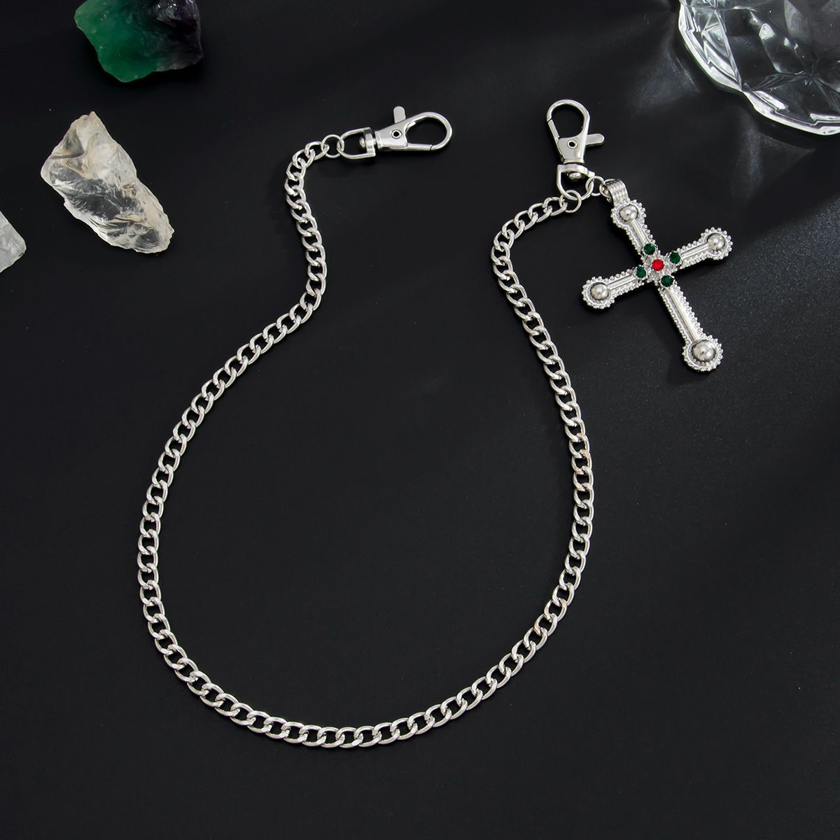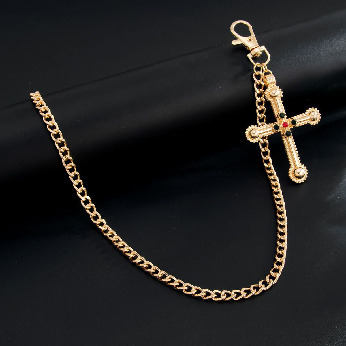 Chaîne de pantalon à pendentif grande croix exagérée européenne et américaine, chaîne suspendue pour jeans pour garçons haut de gamme, chaîne de taille simple transfrontalière pour hommes