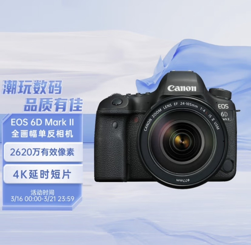 Appareil photo reflex plein format Canon EOS 6D Mark II 6D2, ensemble d'objectifs standard de classe L 24-105 tout neuf dans son emballage d'origine